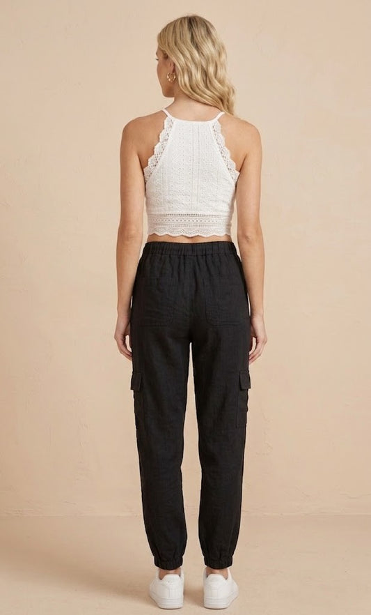 6810-6 Black Tencel Cargo Pants