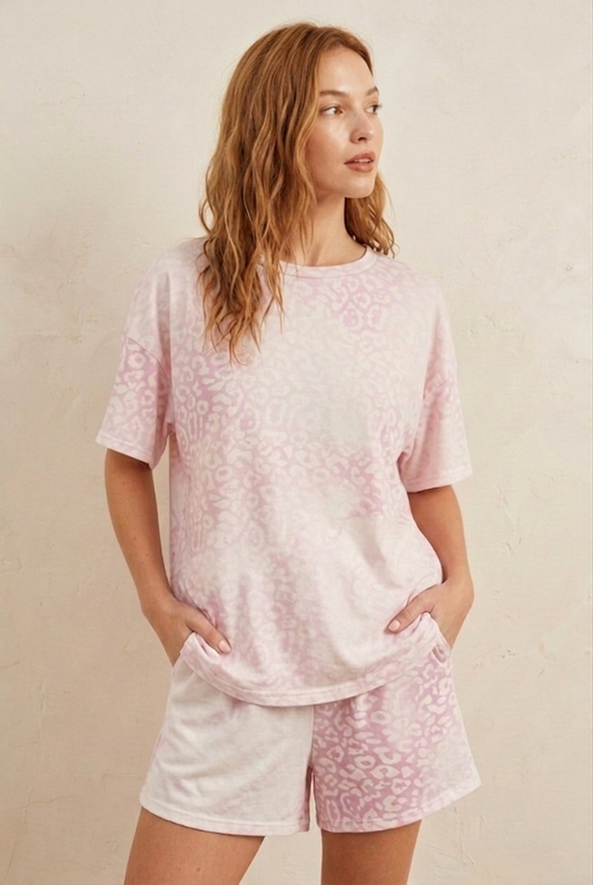 065 Soft Lavender Leopard T-Shirt & Shorts Set
