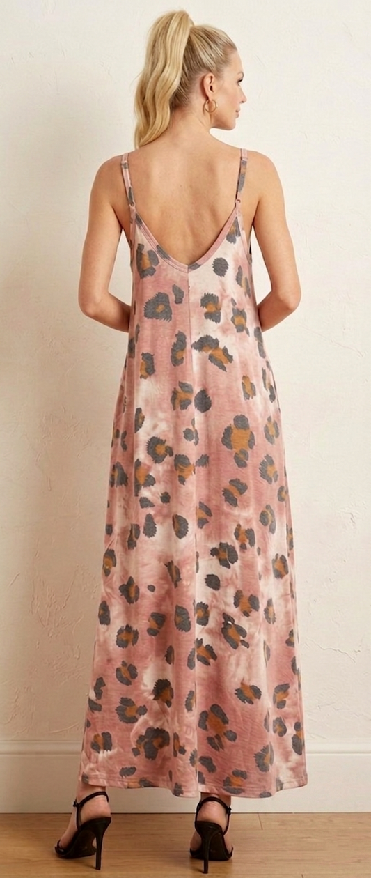 8434 Dusty Rose Leopard Maxi Dress with pockets