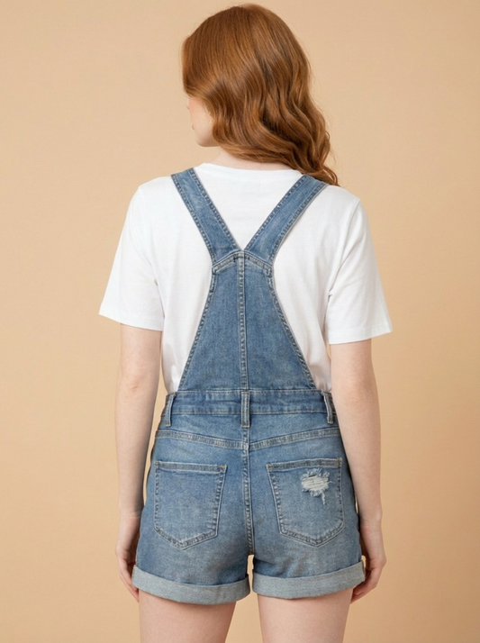 169881 Distressed Blue Denim Short Overalls Jumper