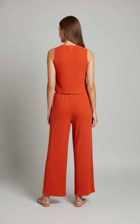 IRIS-1S Spiced Orange Sleeveless Crinkle Top & Wide-Leg Pant Set