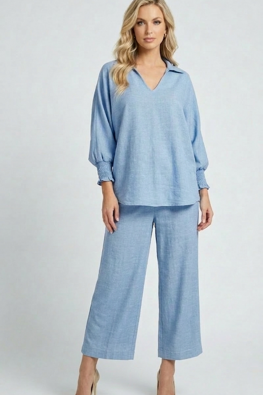 5820 Misty Blue Smocked Sleeve Blouse