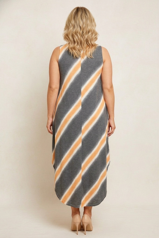 8296 Charcoal & Orange Stripe Sleeveless Dress Plus