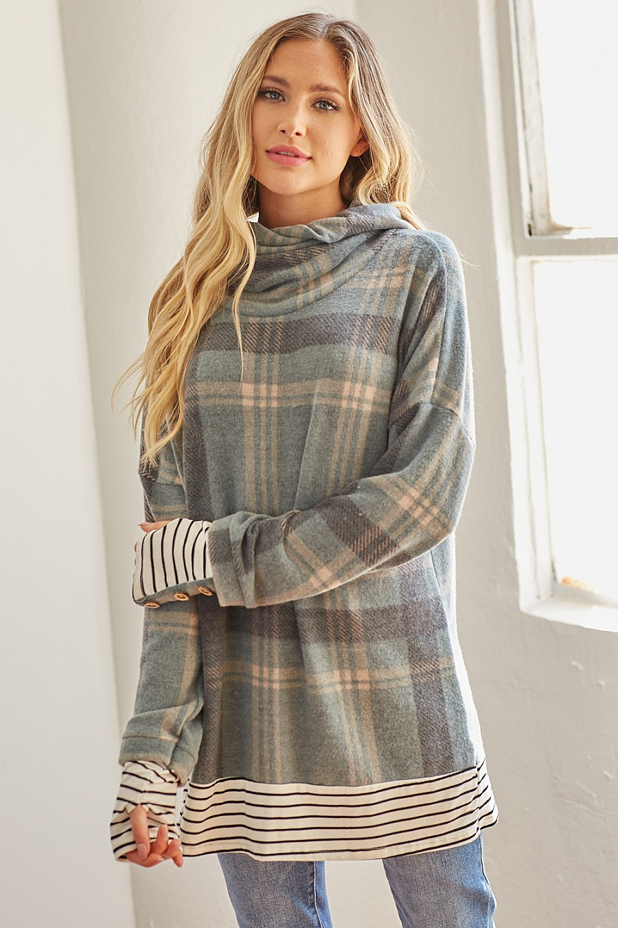 1969 Blue Plaid Tunic W/ Stripe Accent