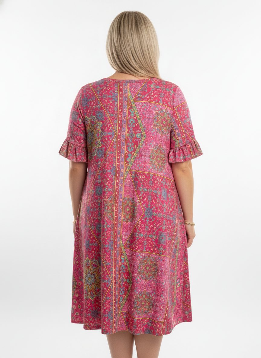 3600 Pink Boho Ruffle Sleeve Dress with side pockets Plus